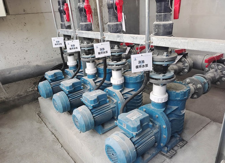 首先,泳池循环水泵材料的选择很重要,机械密封宜为耐高温、耐腐蚀材料,且电机应为全封闭型,循环水泵具有流量大、低噪音的泳池专业变频水泵;其次,泳池循环水泵的数量应与泳池大小水量相关,即水泵的额定流量应大于池水循环净化处理系统的循环流量,才能保证该池水水循环周期所需要流量。